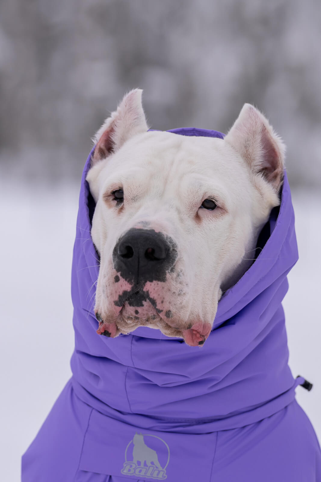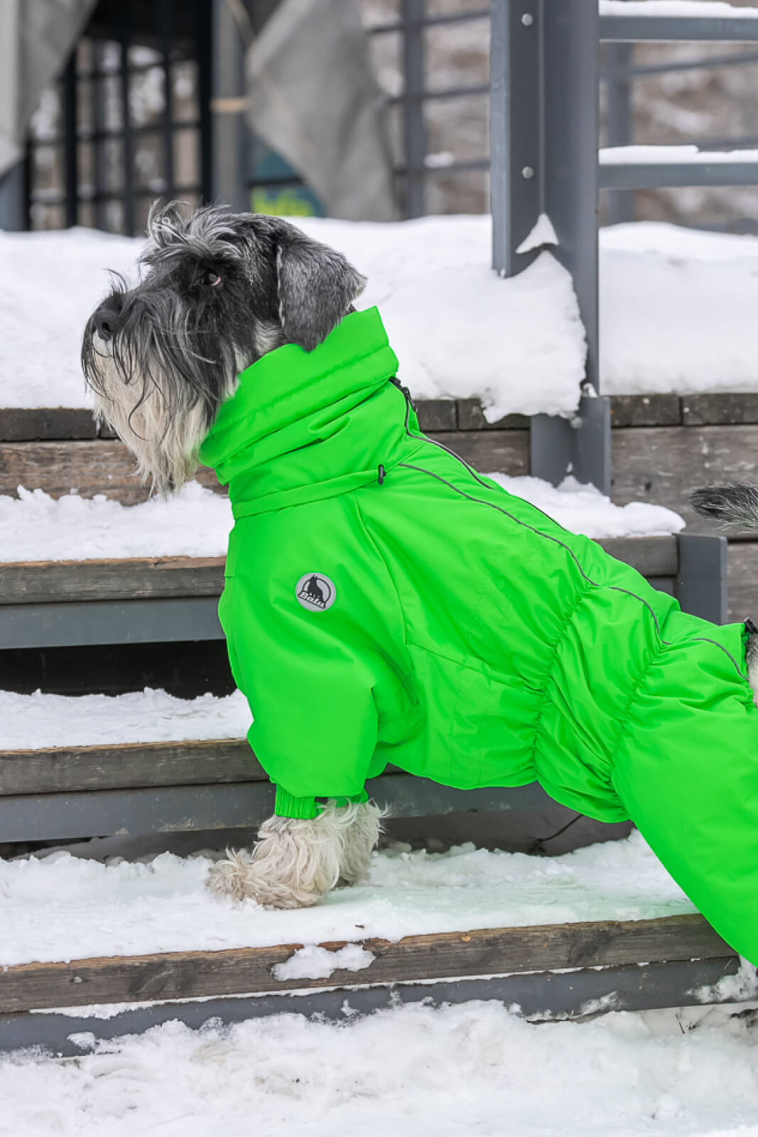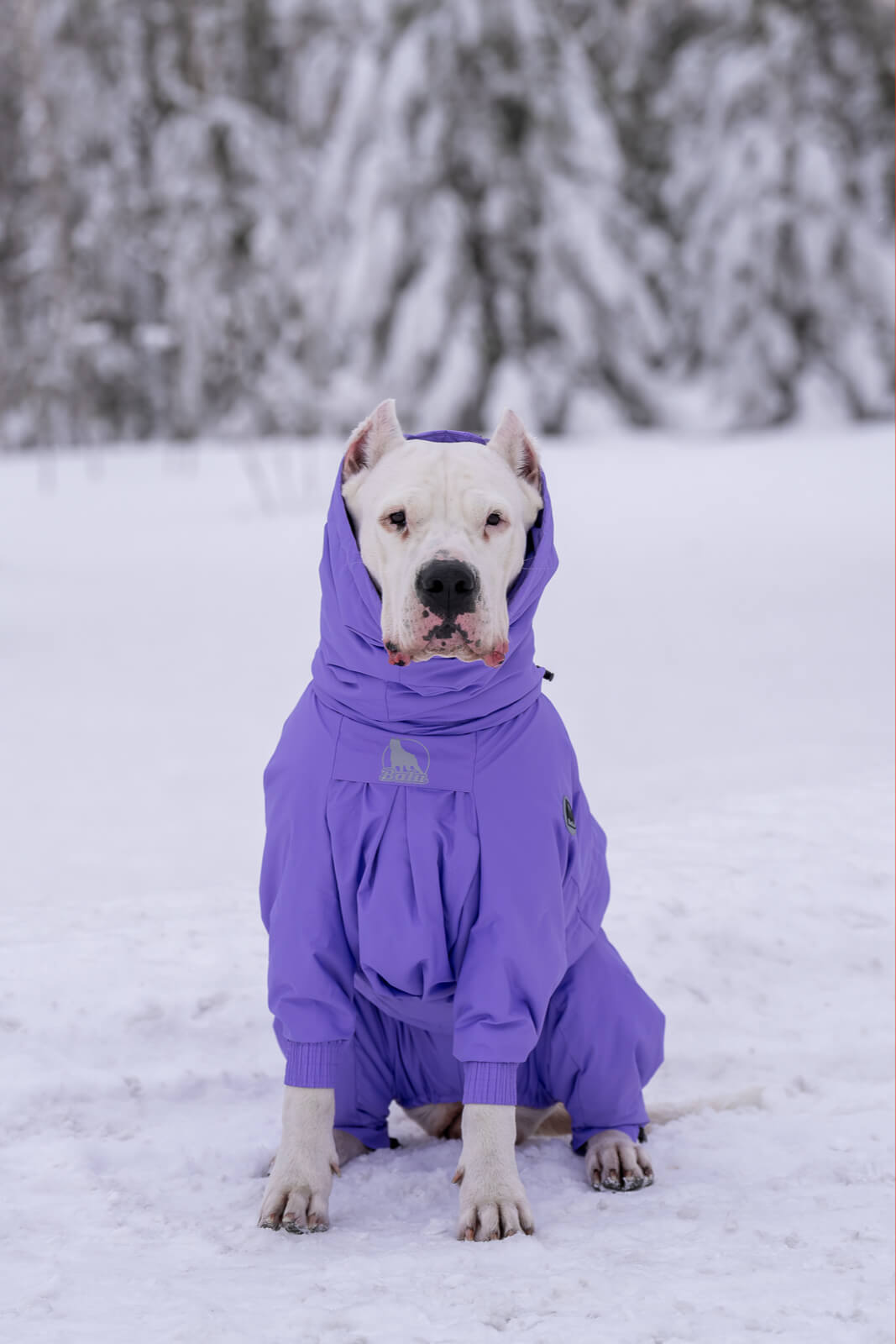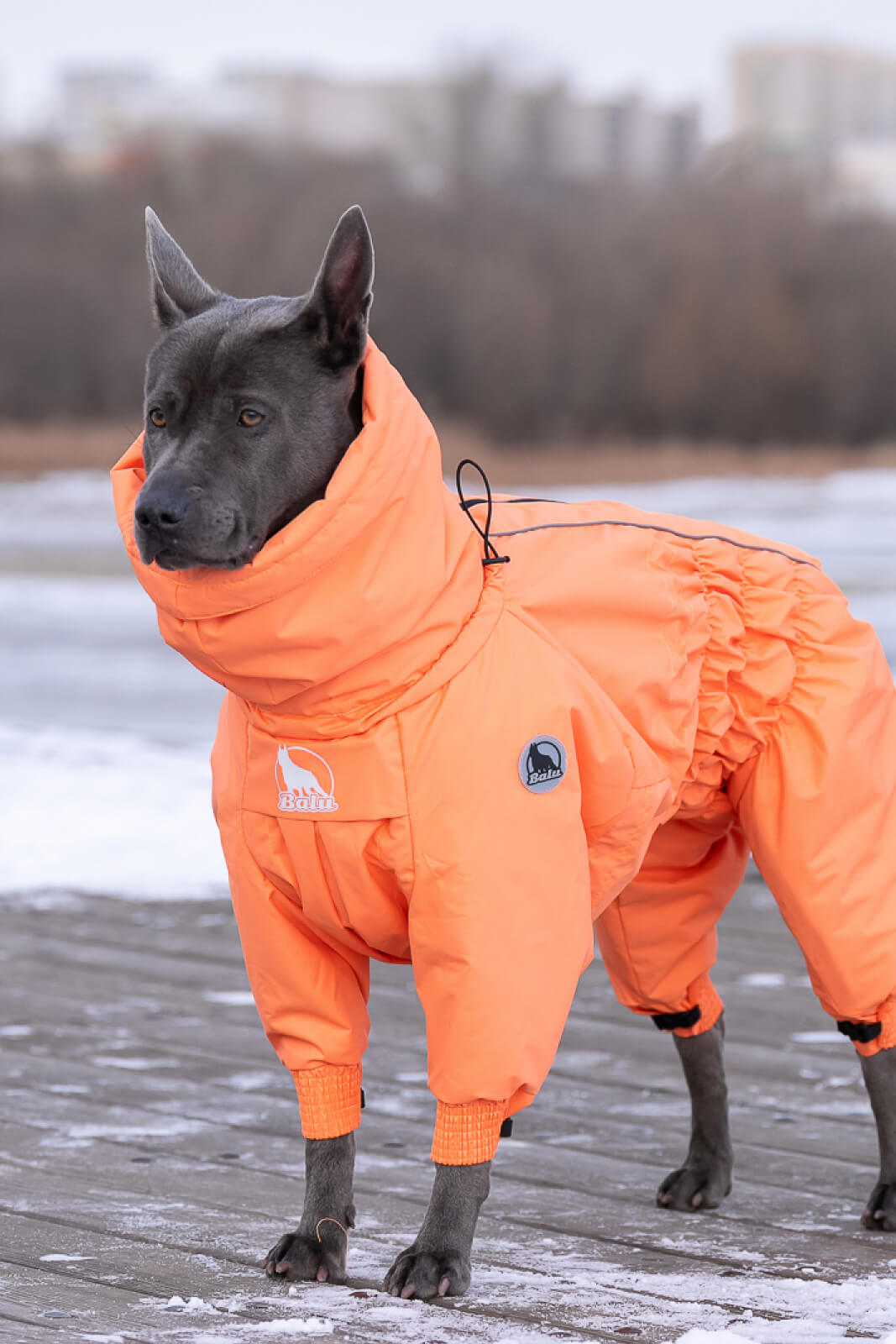 В этом отзыве хотелось бы отметить еще и крутой ворот-капюшон)) Он не мешает собаке, его можно затянуть и спустить как снуд) и при этом - собаке не задувает ветер, не залетает снег))