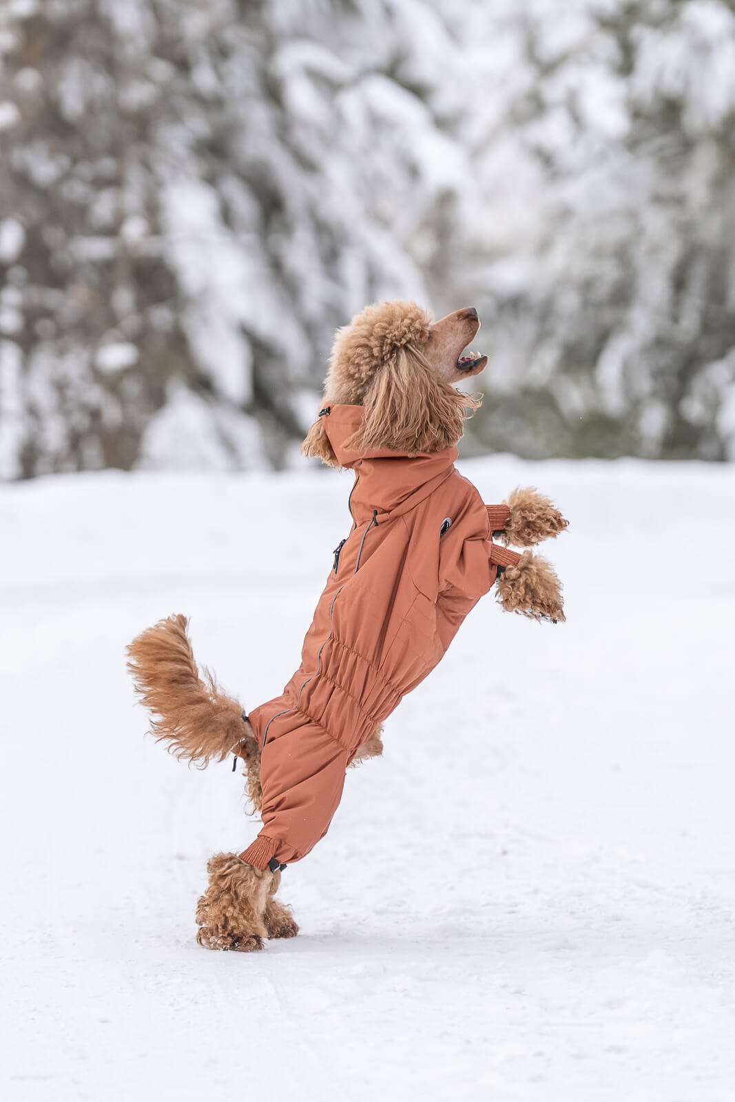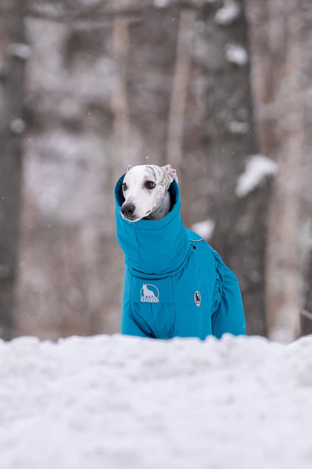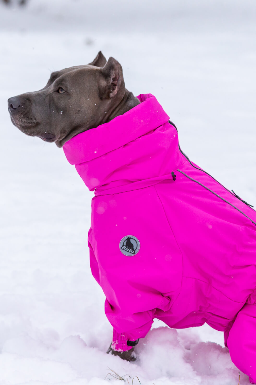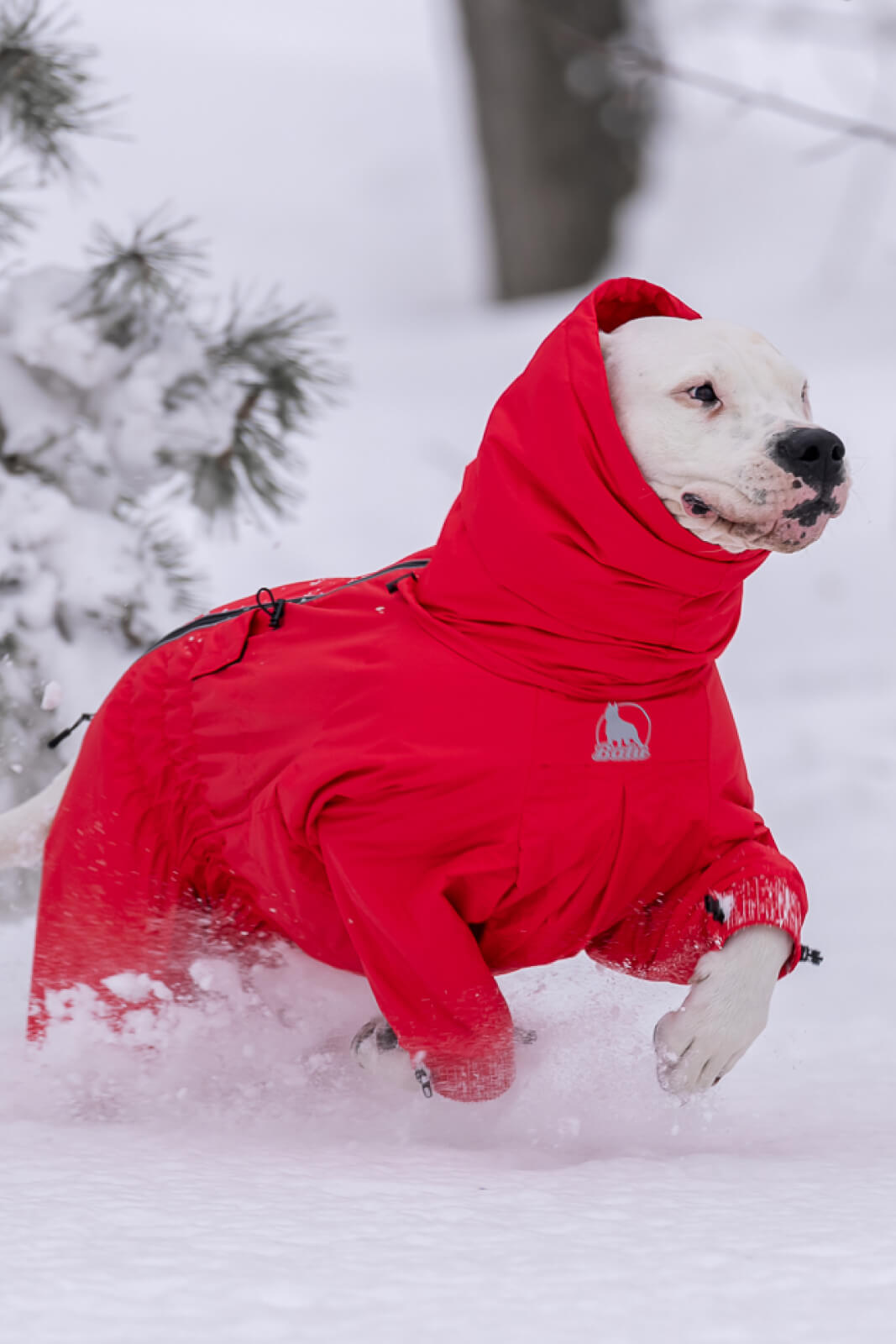 В этом отзыве хотелось бы отметить еще и крутой ворот-капюшон)) Он не мешает собаке, его можно затянуть и спустить как снуд) и при этом - собаке не задувает ветер, не залетает снег))
