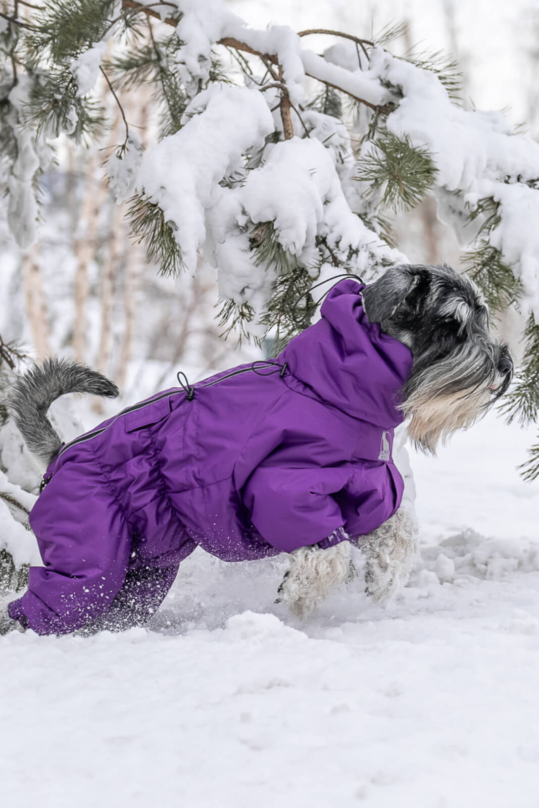 Отличный комбинезон. Качественный пошив, хорошие строчки. Регулировка по всем направлениям. Фольгированный подклад сохраняется тепло. Для нас главное животик, т.к. собака часто ложится в засаду 😁. Движения не сковывает. В туалет ходить ничего не мешает, комбинезон при этом не пачкается.