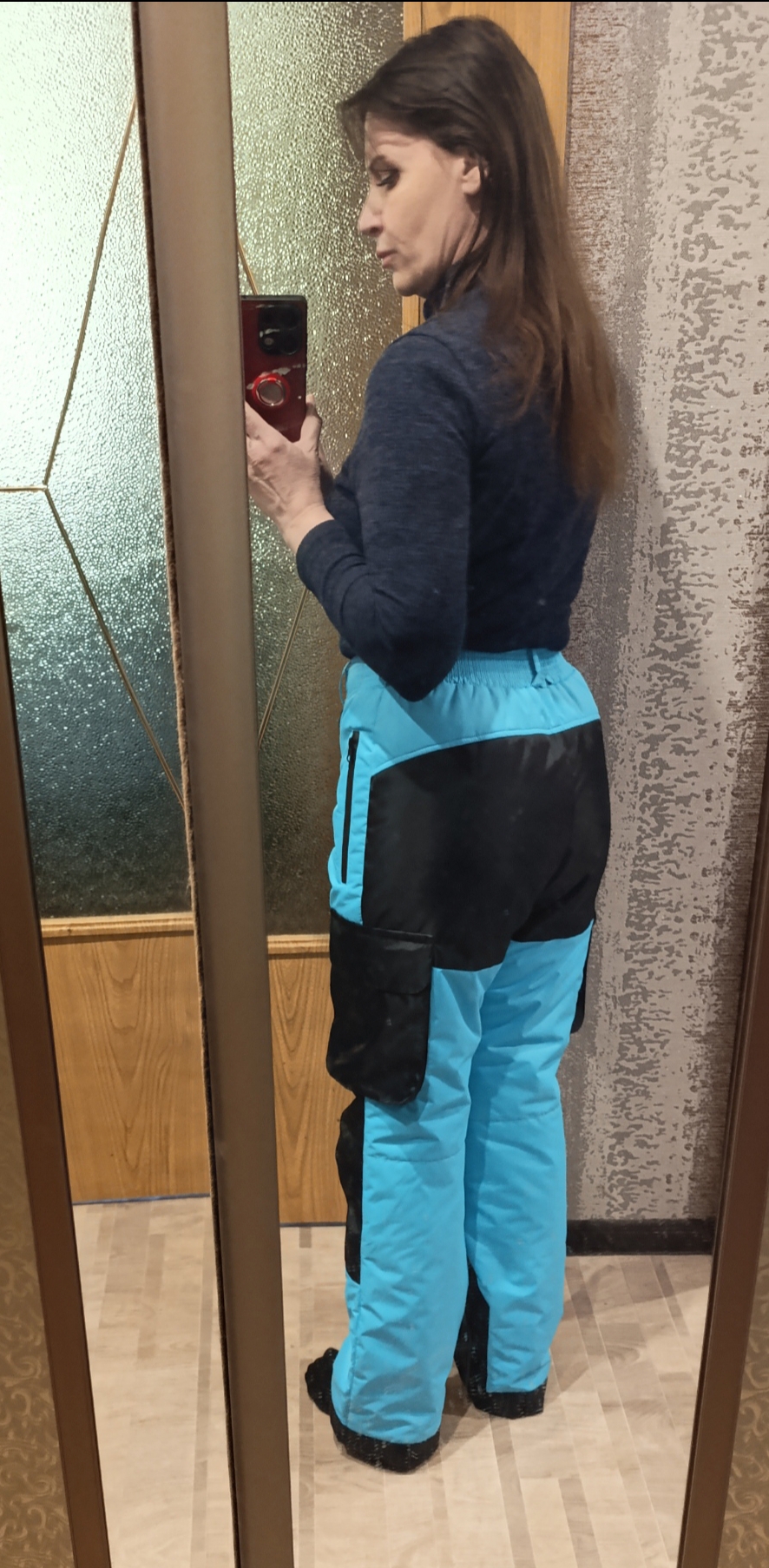 Отличные брюки! Тёплые. Качество, как всегда на высоте. Опасаюсь покупать брюки дистанционно, но тут сели идеально. Это вторые мои брюки от Балу. Очень понравилось наличие карманов выше колен.