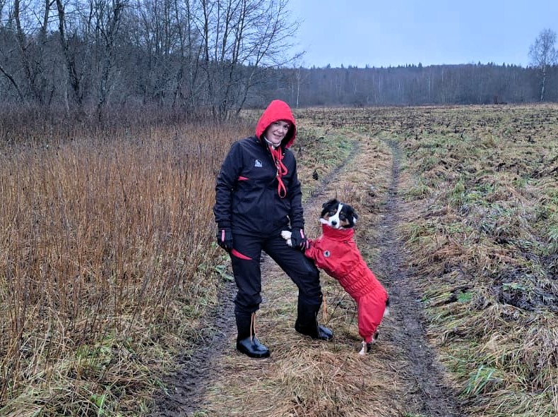 Отличная ветровка, универсальная на межсезонье, ношу костюм с самого начала сентября. Под куртку у меня помещается дополнительно флисовая толстовка. Под дождём не промокает (под ливнем не тестировала), ветром не продувается. Для меня идеально носить примерно в +10 без доп. флиски, если теплее то может быть жарковато. Если собака испачкала лапами, легко стирается влажной тряпочкой. Руки всегда свободны, всё по карманам, диски и колечко легко помещаются в задний карман на спине.