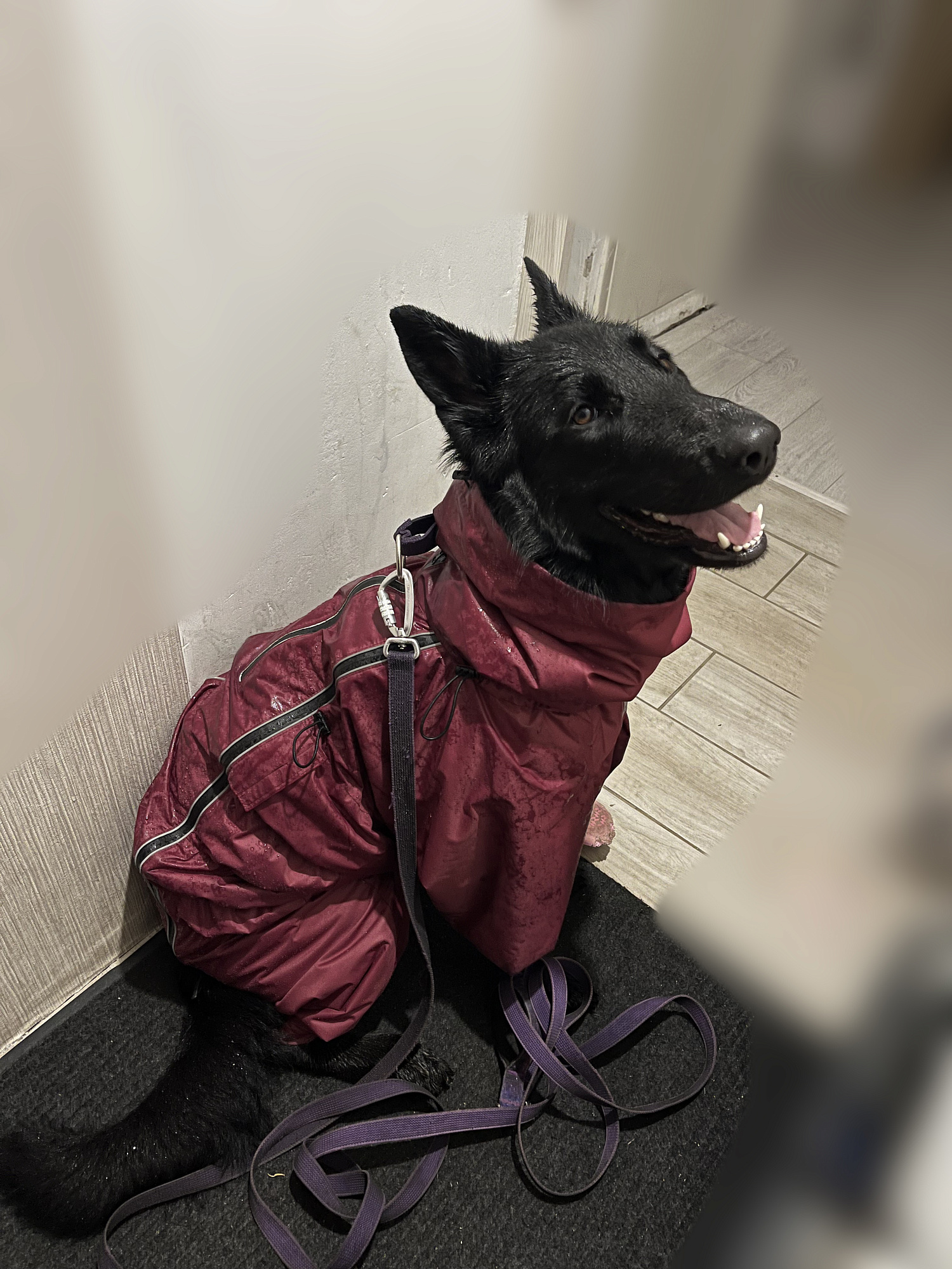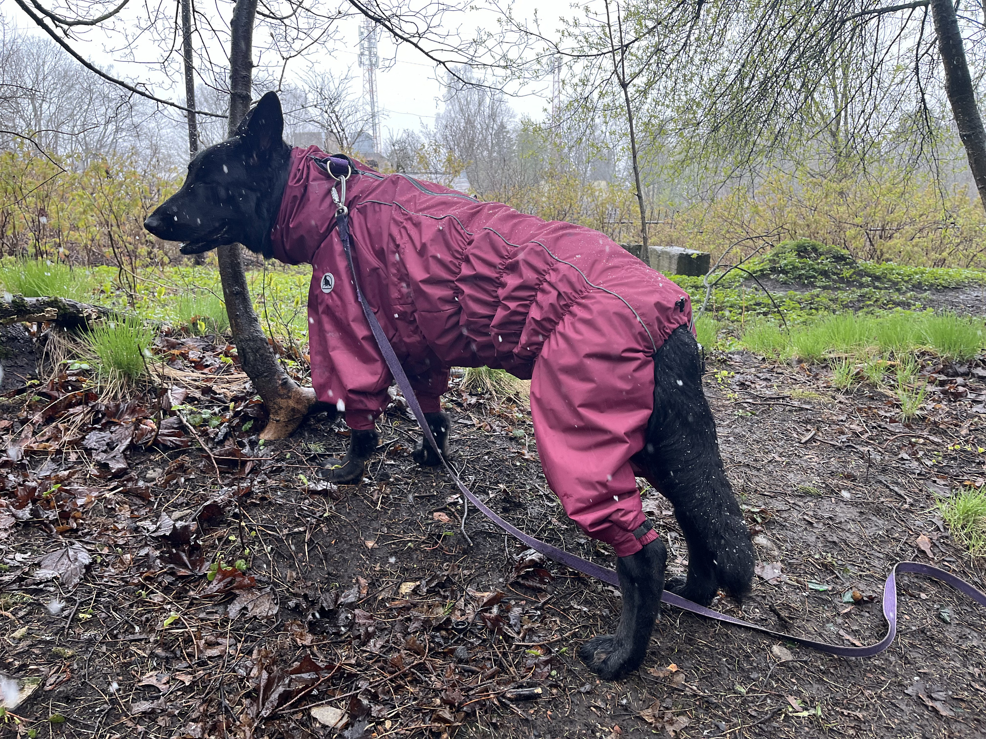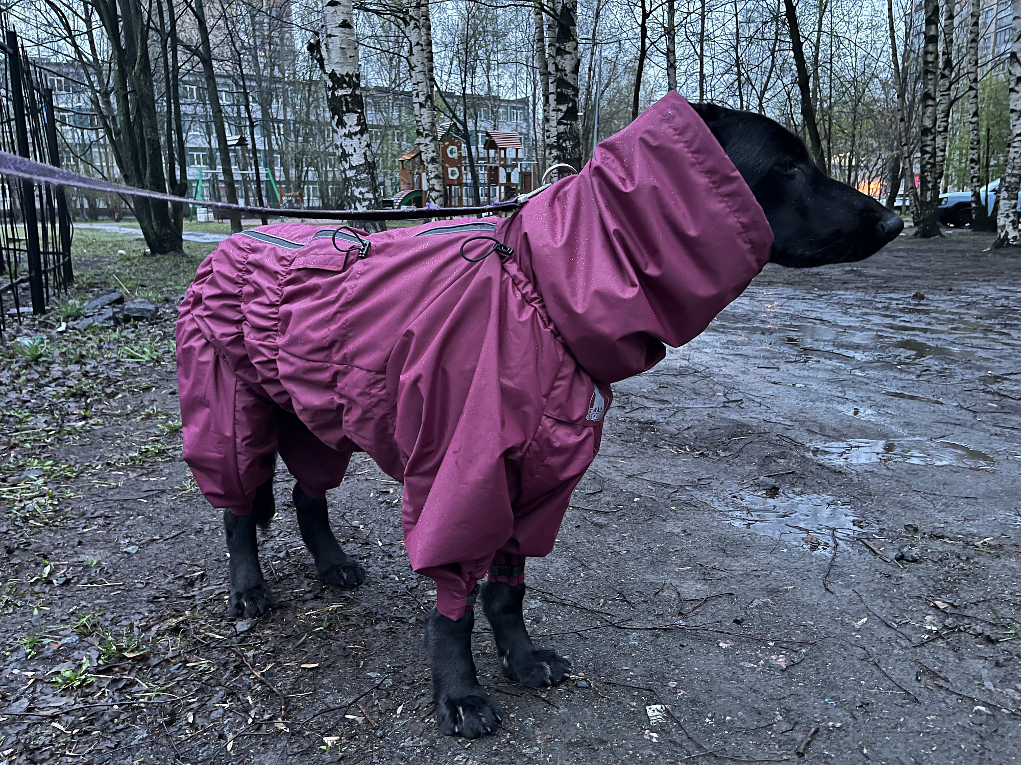Дождевик отличный, по собаке сидит идеально, теперь не надо мыть полсобаки после прогулки. Ткань супер. Однозначно рекомендую. Буду брать еще :)