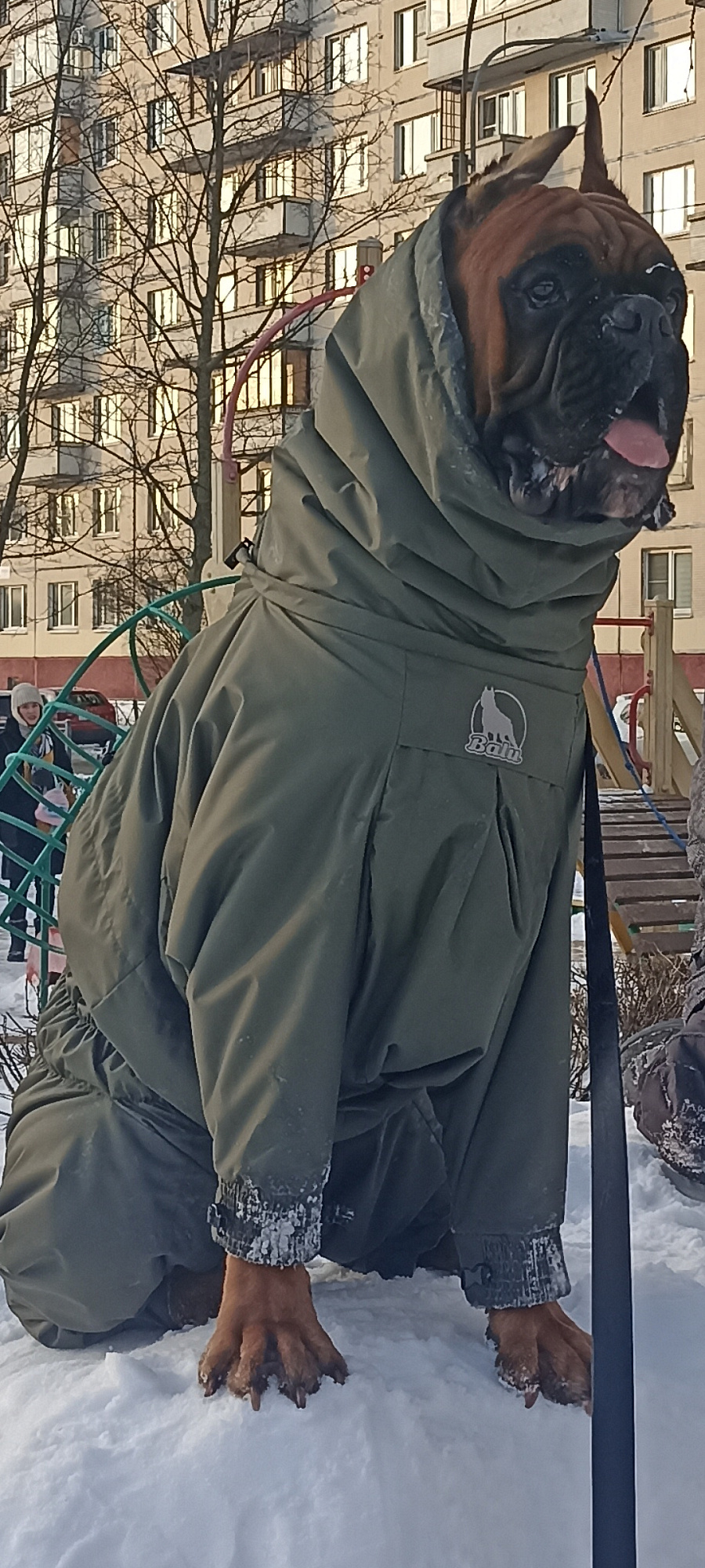 Главное чтобы костюмчик сидел, это про данную модель. Идеально по фигуре, движения не сковывает, выдержал игру двух боксёров)) Очень важно, что собакену тепло и комфортно. Спасибо!!!