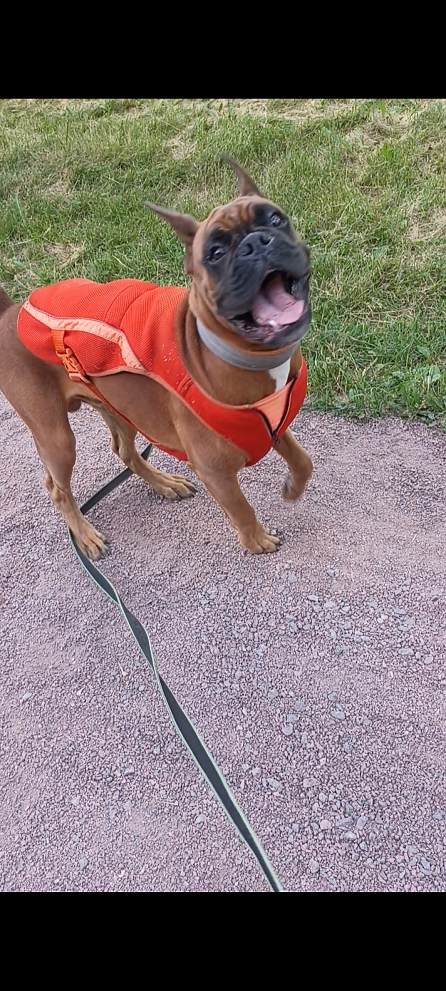 В самые жаркие дни, охлаждающий жилет - это спасение! Моему курносику очень комфортно было в нём не только в городе, но и в деревне. Спасибо!))