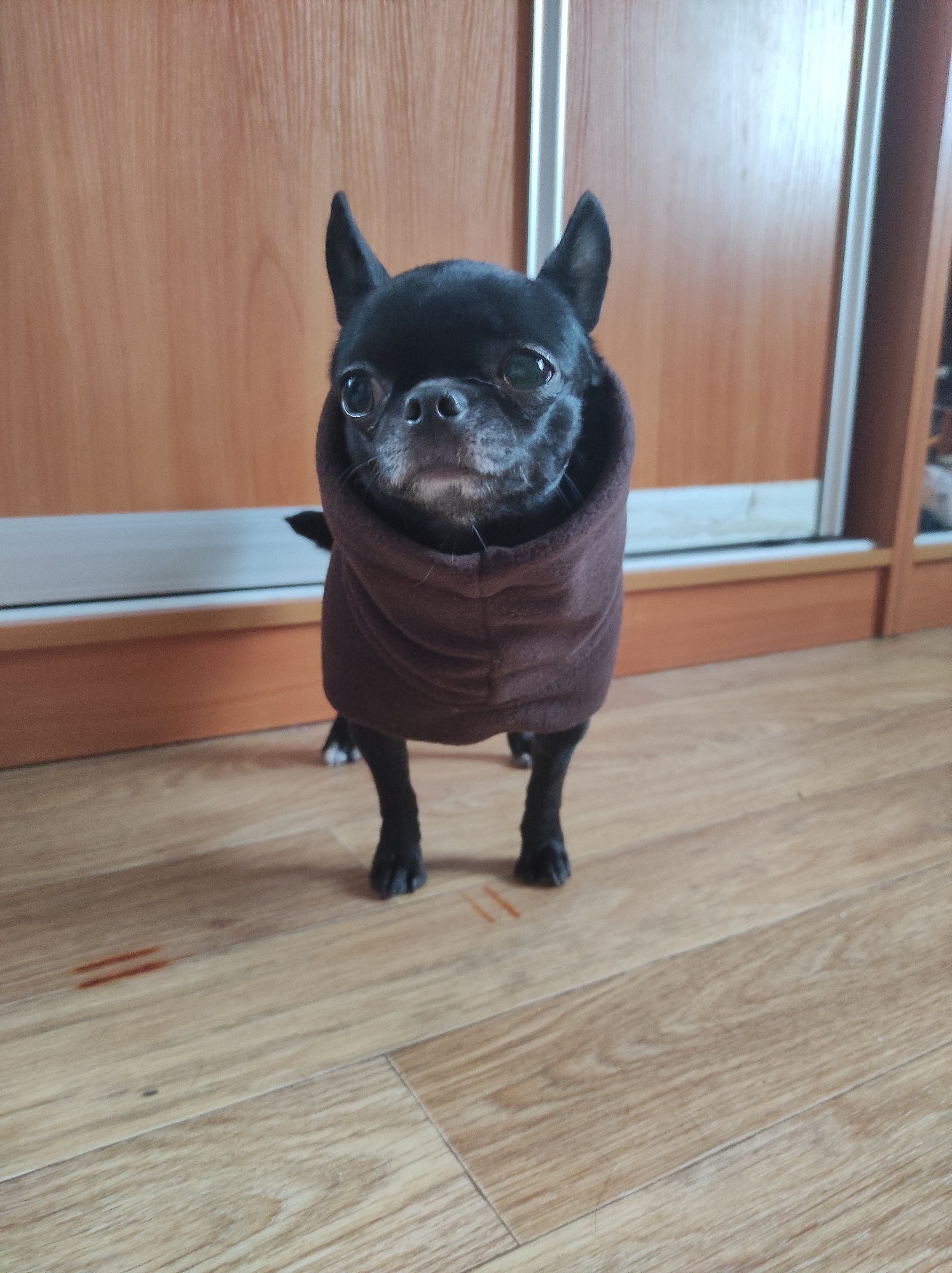 Хотелось бы более короткую нижнюю часть с липучками, тк моей чихуа немного заезжает на задние лапы, но не критично. Буду одевать в неë собачку при температуре +5 - 0°С.
