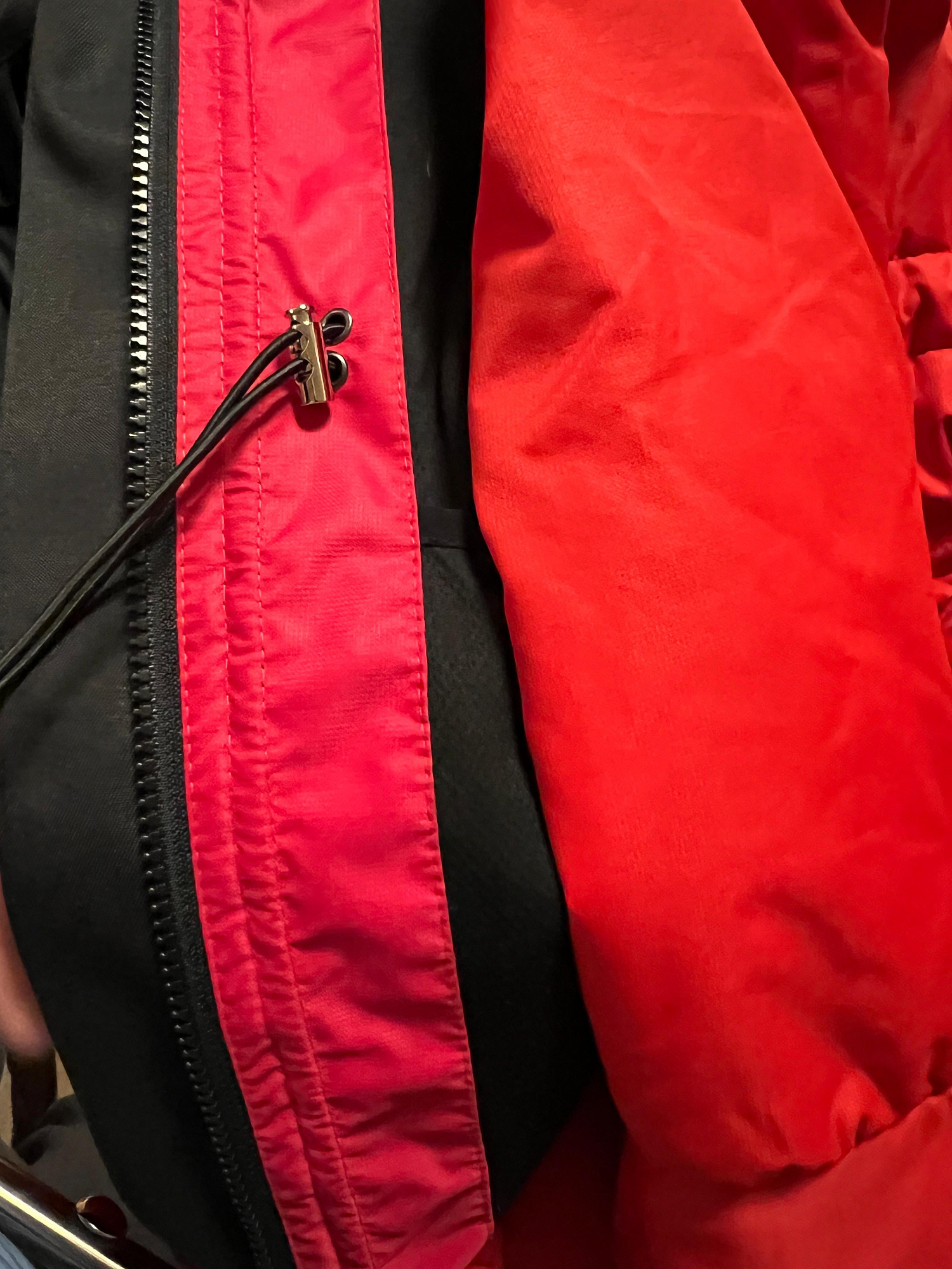 Ложка дёгтя, которая заставляет искать альтернативу, это ткань жилета, оказалось она линяет и окрасила в черный цвет ткань куртки на рукавах, карманах и боковую часть, в местах трения и не предупредили о том, что цвет вставки будет другого оттенка, отличного от выбранного. Например в подобной ситуации можно было предложить выбрать другой цвет.