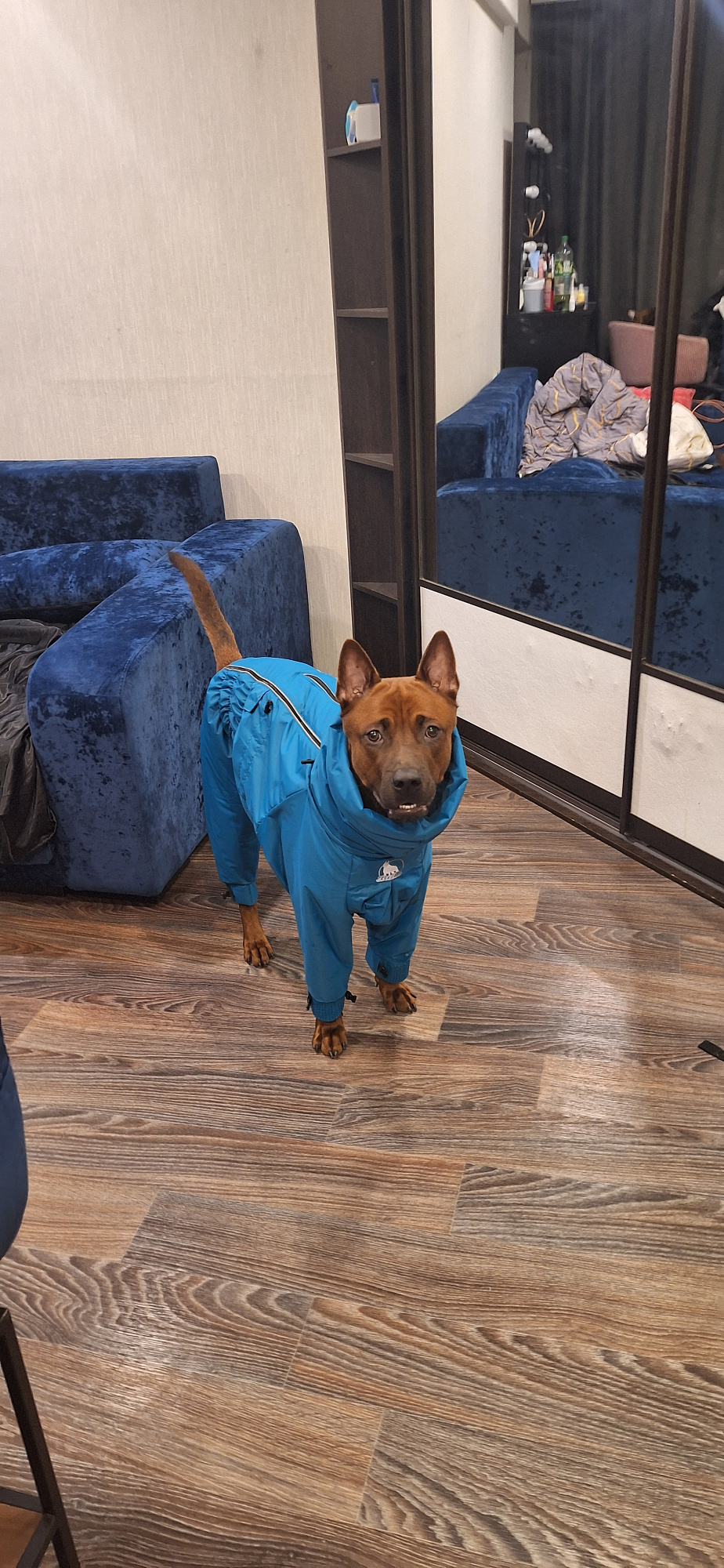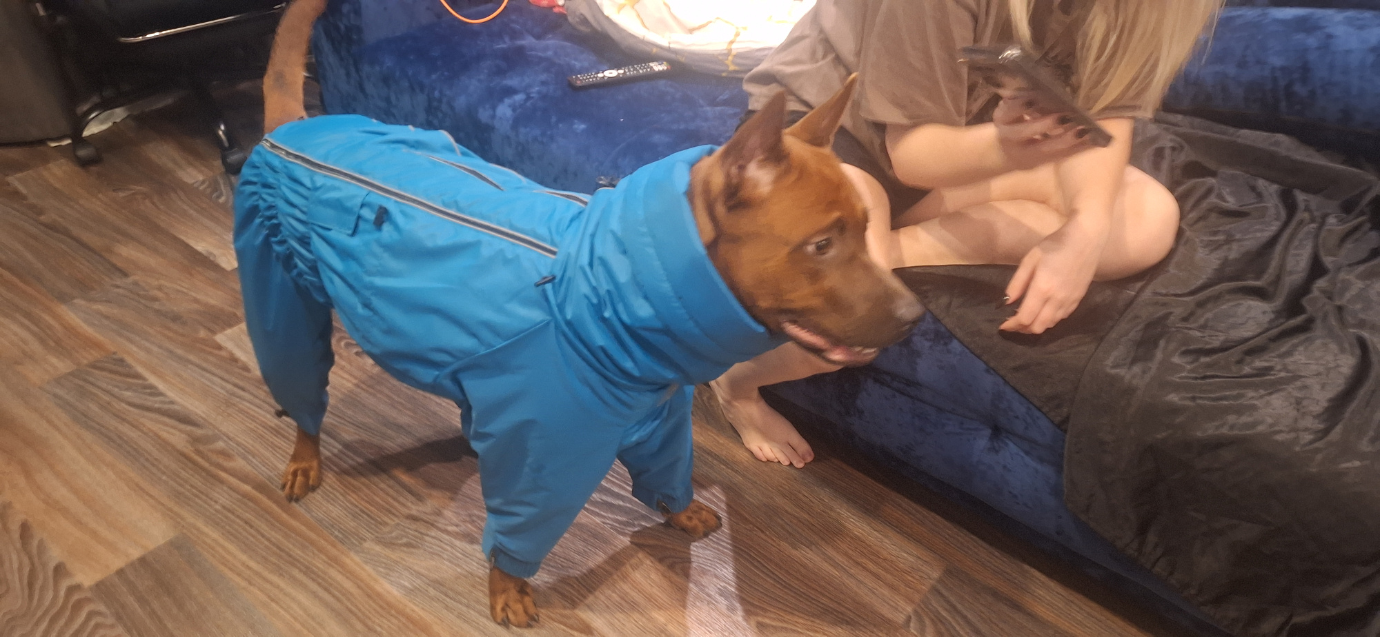Дождевик просто супер. Для моего самоеда просто спасение в дождь и грязь. Пачкаются только лапки. С туалетом тоже все в порядке. В старом комбинезоне у нас было все в штанинах, а с этим все отлично. Помимо его отличной функциональности он еще и очень красивый, ходим и собираем лайки. Я еще купила себе ветровку и утепленные штаны (совместный образ). -Очень удобные и красивые. В планах еще делать здесь покупки. Заказали эту модель потому что сразу не увидела модель 24 года улучшенную. Будем его заказывать на сменку. Такие все цвета красивые, глаза разбегаются. Единственная проблема на собачьем комбинезоне молния туговато застегивается. Но думаю со временем разработается.