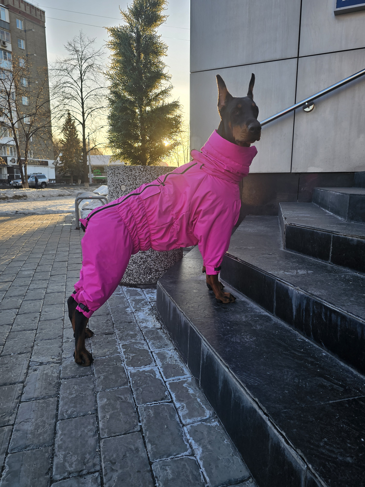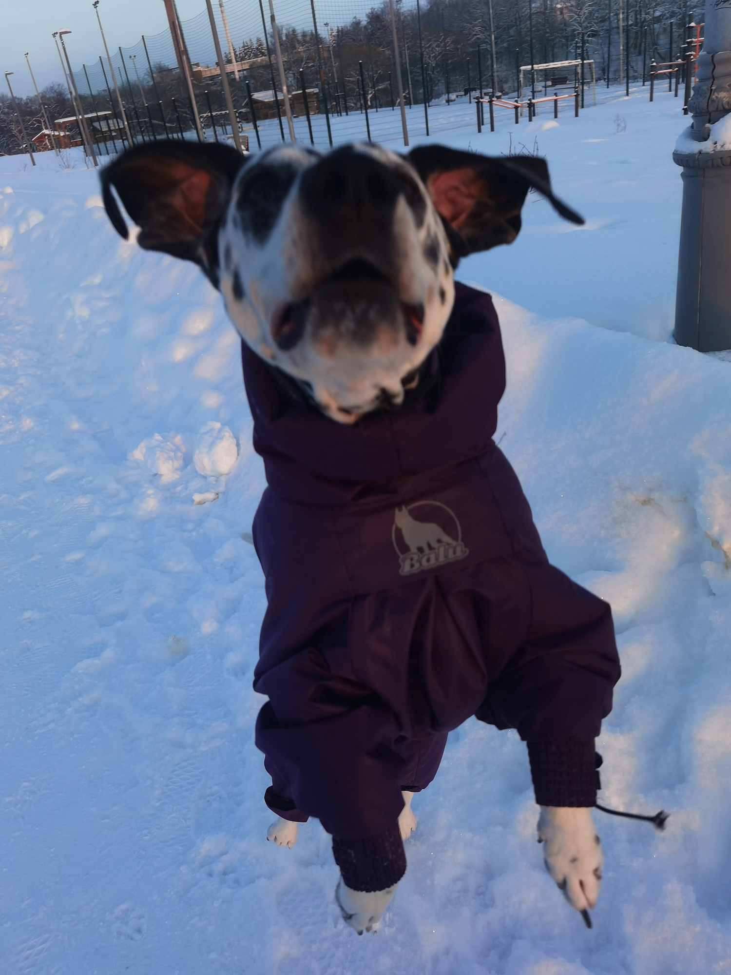Сказать что я довольна, это ничего не сказать! Такого качества и внимания к деталям , я давно не видела! Все продумано до мелочей, очень удобно надевать! Собаке комфортно, движения не сковывает. Ещё момент, о котором хочу написать. Нам комбинезон зимний пришел в тот день, когда на улице было -3. При такой температуре, я бы надела флисовую кофточку, но тут уж так хотелось выгулять обновки, тем более день был такой солнечный. И вот собаке жарко не было, она не пыхтела и , когда дома снимала, тело было тёплое, но не горячее. Цвет фуксия не термоядерный, как я думала, а приятный глазу благородный малиновый. В общем, мы теперь самые довольные и счастливые в мире))) Сразу захотелось весь гардероб сменить на Балу!