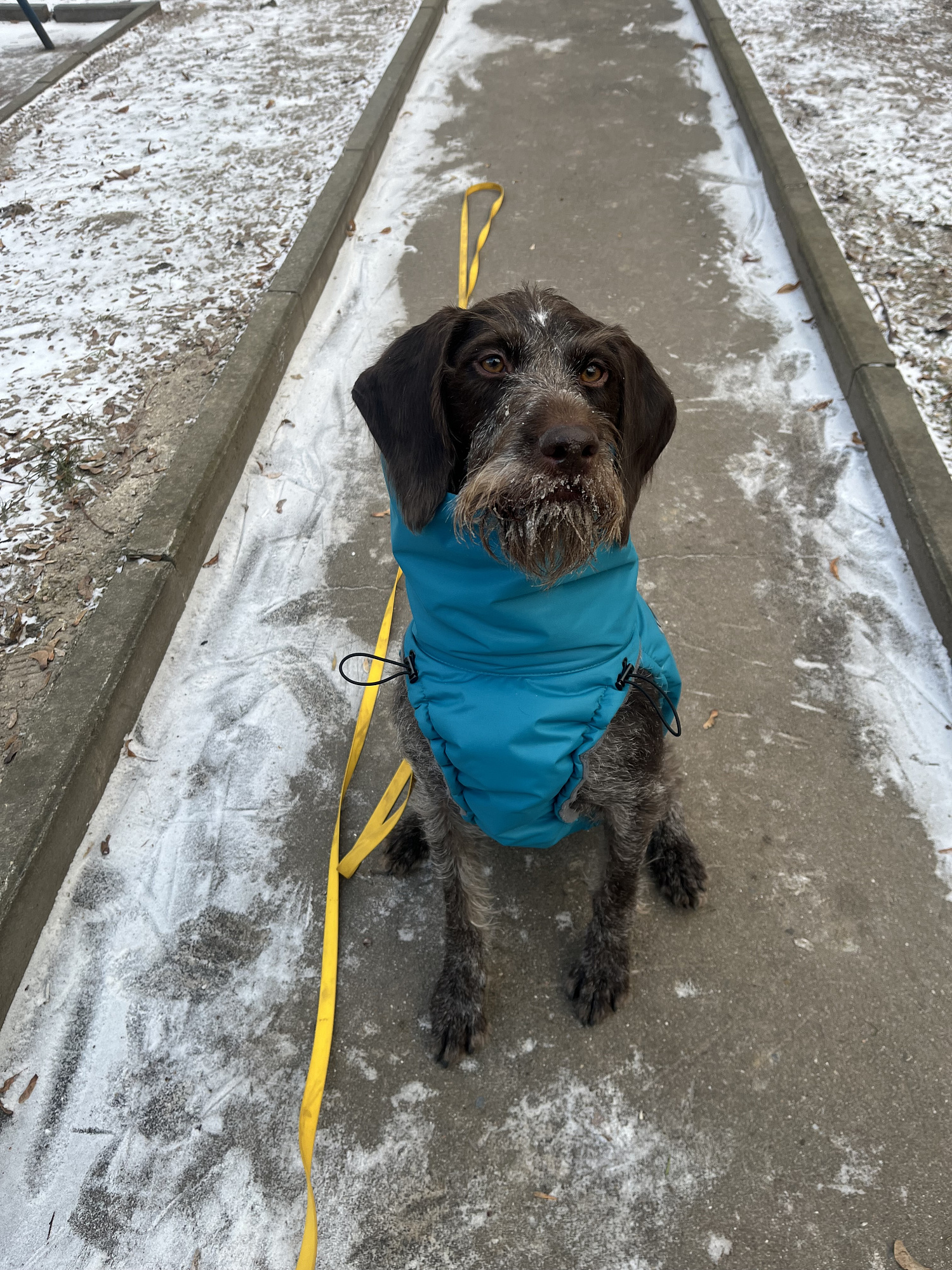 Моя неистовая дратхарица порвала поводком за 3 выхода отверстие на шее для поводка и стала отказываться эту прекрасную куртку носить - не пойму то ли для собак которые тянут и рвутся не подходит такой метод крепления поводка, то ли надо было на размер больше - тогда и не порвали может быть и собаке было бы комфортно.