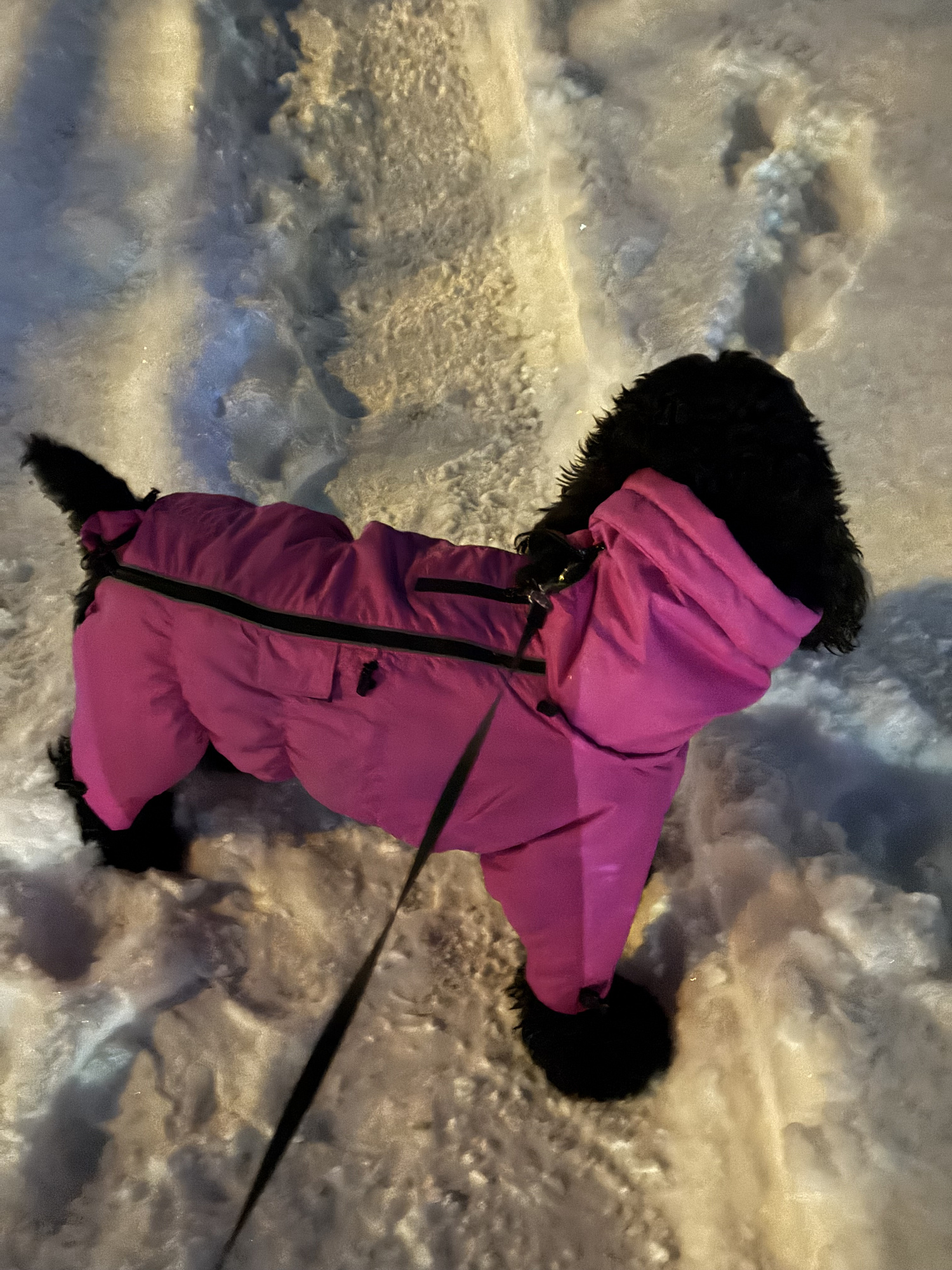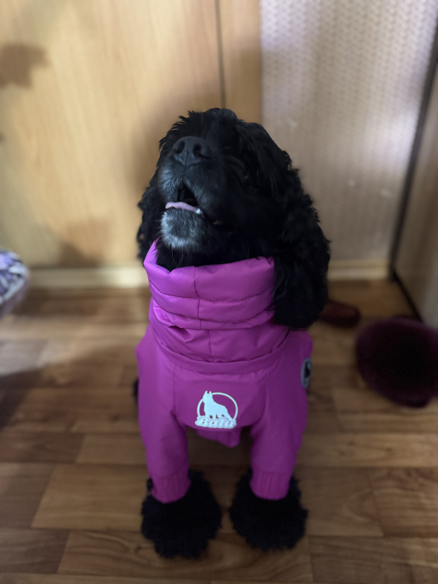 В обновленной модели удлинили воротник и это мастхэв для спаниелей, наши уши наконец чистые, и нам не нужны дополнительные снуды и шапки.